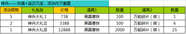 活动内容:活动期间开启每日礼包限时抢购活动,大量返利等你来。