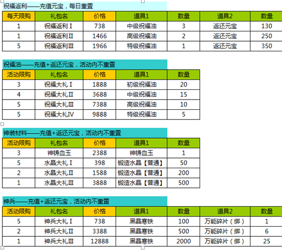 2、活动期间,各个礼包限量限时购买;