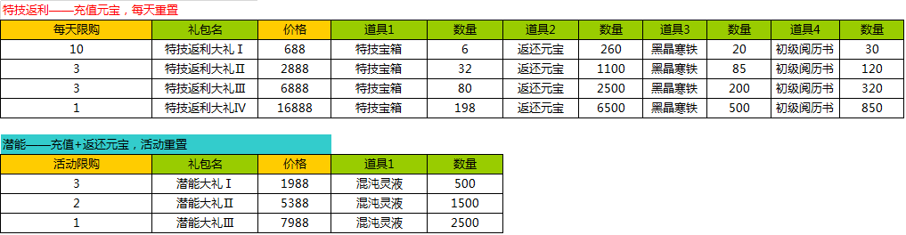 1、活动期间,各个礼包限量限时购买;