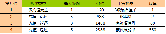 活动内容:活动期间开启每日礼包限时抢购活动,大量返利等你来。