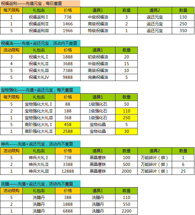 1、活动期间,各个礼包限量限时购买;