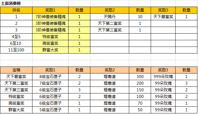 1.活动期间消费额度达到10000元宝即可上榜,榜单最多显示前100名土豪。
