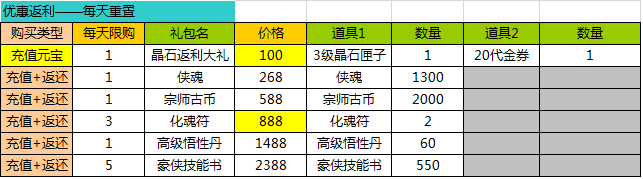活动内容:活动期间开启每日礼包限时抢购活动,大量返利等你来。