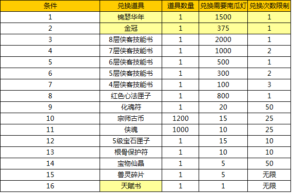 活动内容:活动期间,每天完成相应的活动内容即可获得对应数量的南瓜灯。南瓜灯可兑换高级技能书和珍稀道具!