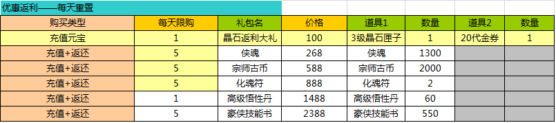 活动内容:活动期间开启每日礼包限时抢购活动,大量返利等你来。