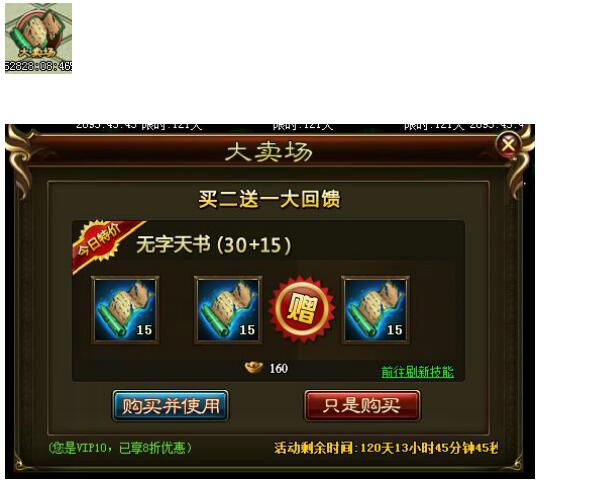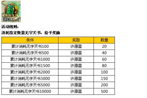 活动内容:活动期间推出无字天书特价,并且买三十送十五的馈赠活动。