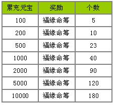 3.每日累计充值元宝满足一定条件,即可获得福缘命筹!