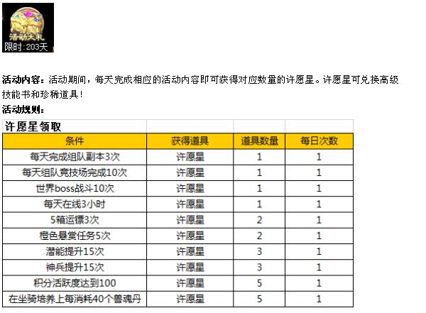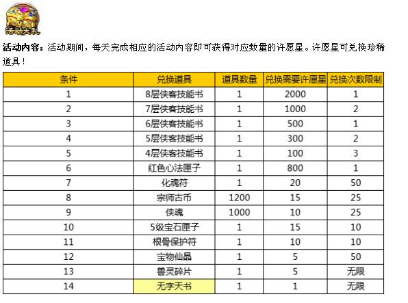 活动十一、许愿星兑换活动