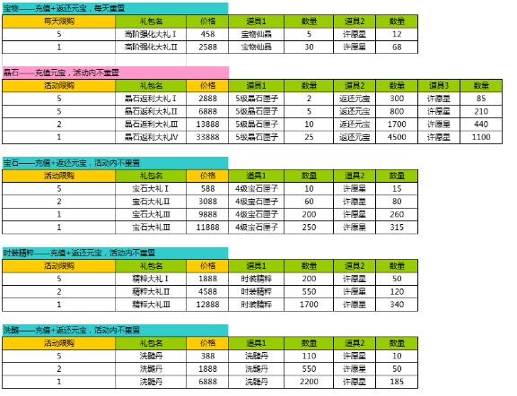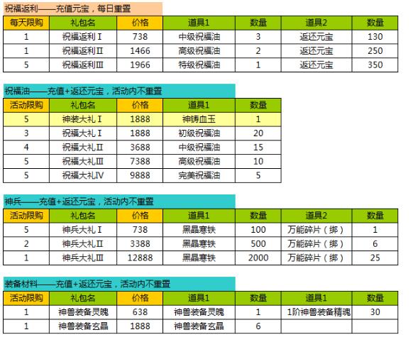 1、活动期间,各个礼包限量限时购买;