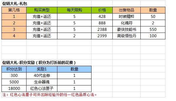 1.购买促销大礼包可获得消费积分(1元宝=1积分)