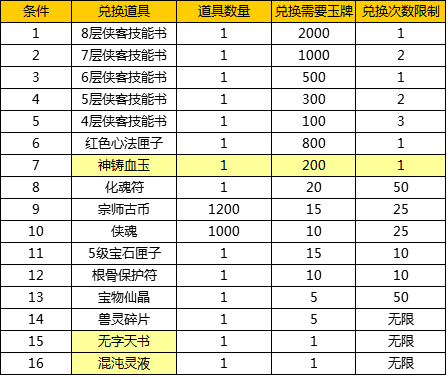 活动规则:活动期间,只要您消耗相应数量的活动道具,即可兑换以下奖励