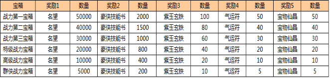 活动内容:消耗元宝可打开宝藏,根据打开的宝藏组合可获得相应的道具