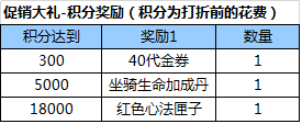 1.购买促销大礼包可获得消费积分(1元宝=1积分)