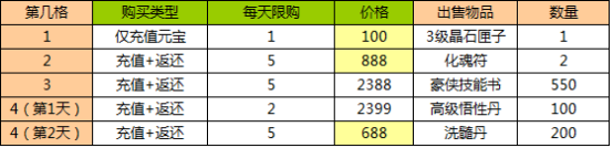 活动内容:活动期间开启每日礼包限时抢购活动,大量返利等你来。