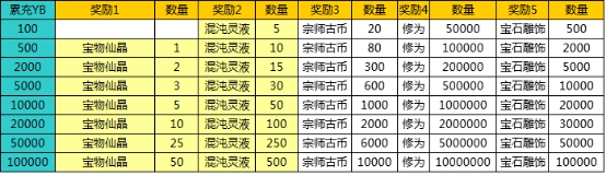 活动内容:活动期间,玩家累计消费到指定元宝数,可进行1次抽奖,获得返还元宝奖励。