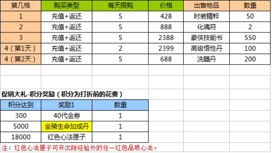 1.购买促销大礼包可获得消费积分(1元宝=1积分)