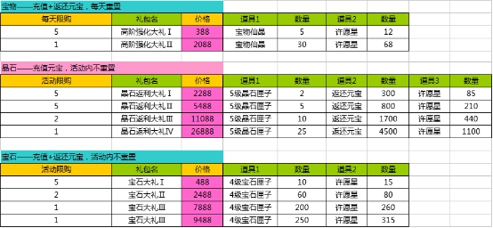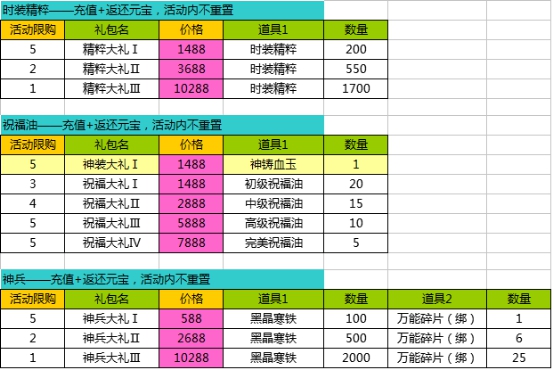 1、活动期间,各个礼包限量限时购买;