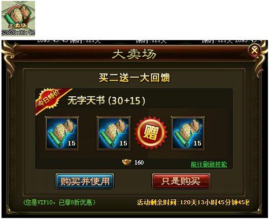 活动内容:活动期间推出无字天书特价,并且买三十送十五的馈赠活动。