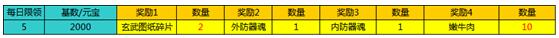 活动期间,只要每累积充值2000元宝即可领取一次奖励,每日最高领取5次。