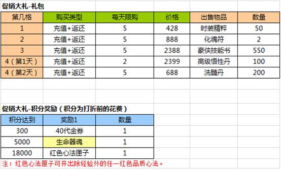 1.购买促销大礼包可获得消费积分(1元宝=1积分)
