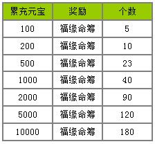 3.每日累计充值元宝满足一定条件,即可获得福缘命筹!