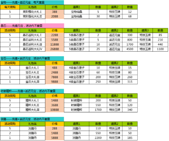 1、活动期间,各个礼包限量限时购买;