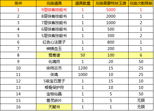 活动十二、特技玉牌兑换活动