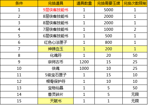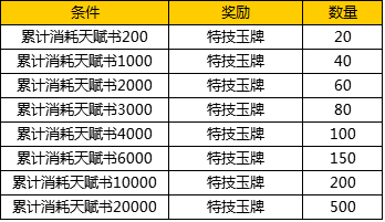 活动内容:活动期间,每天完成相应的活动内容即可获得对应数量的特技玉牌。特技玉牌可兑换高级技能书和珍稀道具!