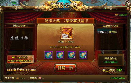 8.抽奖机会只能通过充值元宝和抢购券购买(优先消耗抢购券)