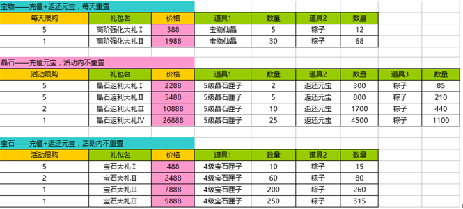 1、活动期间,各个礼包限量限时购买;