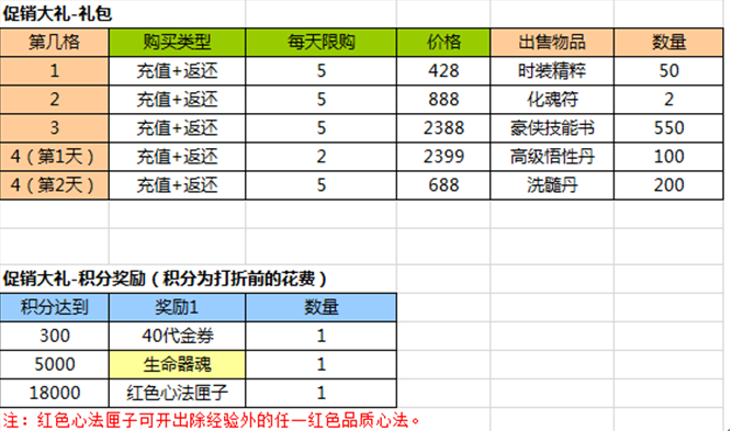 1.购买促销大礼包可获得消费积分(1元宝=1积分)