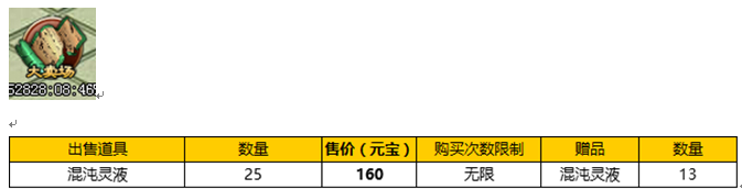 活动内容:活动期间推出混沌灵液特价,并且买25送13的馈赠活动。