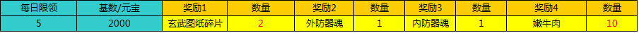 活动期间,只要每累积充值2000元宝即可领取一次奖励,每日最高领取5次。
