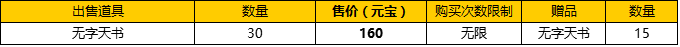活动内容:活动期间推出无字天书特价,并且买30送15的馈赠活动。