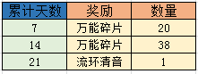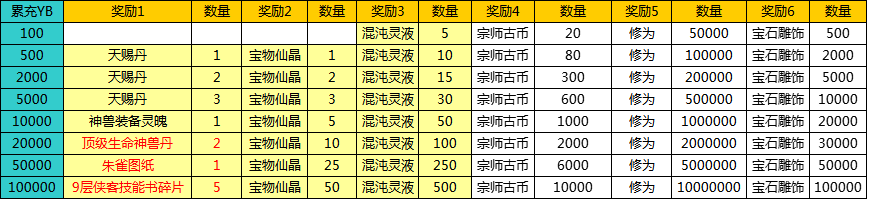 2、玩家累计充值7天、14天、21天,无论充值多少元宝都能领取额外累积奖励。