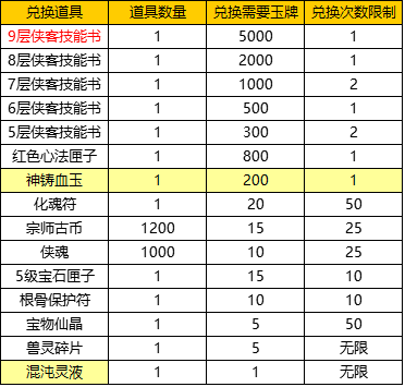活动内容:群雄特技,烽火战连天!活动期间,每天完成相应的活动内容即可获得对应数量的特技玉牌。特技玉牌可兑换高级技能书!