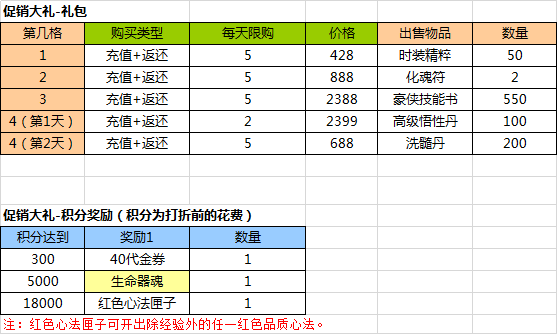 1.购买促销大礼包可获得消费积分(1元宝=1积分)