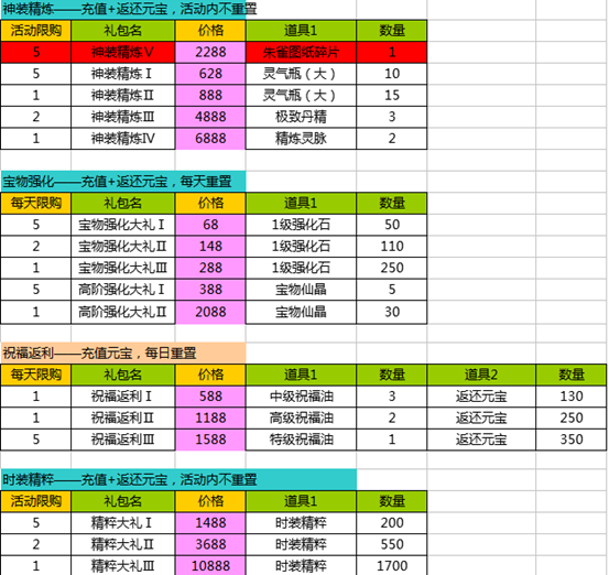 1、活动期间,各个礼包限量限时购买;