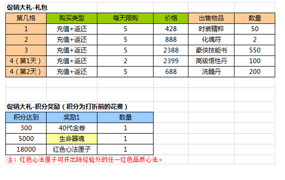 1.购买促销大礼包可获得消费积分(1元宝=1积分)