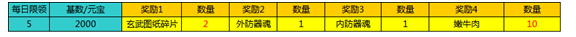 活动期间,只要每累积充值2000元宝即可领取一次奖励,每日最高领取5次。