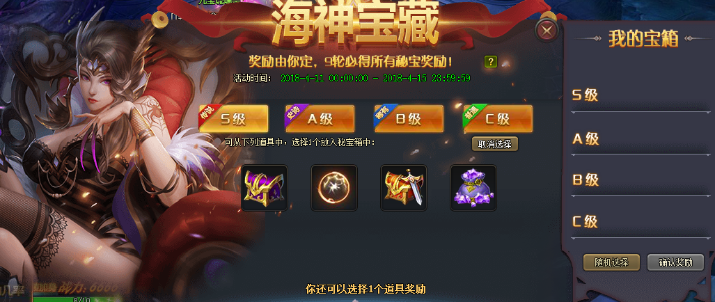 规则:选择自己需求的物品,使用海神钥匙,打开属于你的宝藏