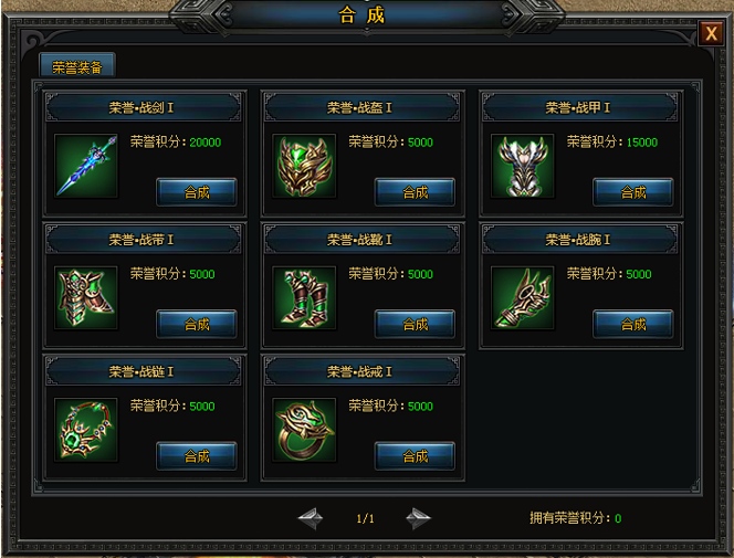 【兑换说明】参加跨服竞技,获得荣誉积分,积累积分兑换相应的装备部位