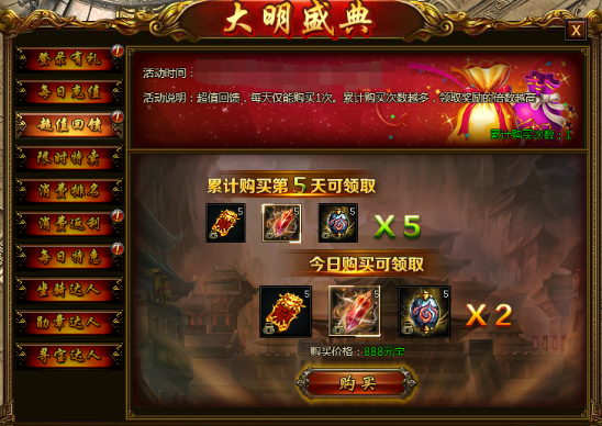 【活动说明】每天只能购买1次,累计购买次数越多,领取奖励的倍数越高!