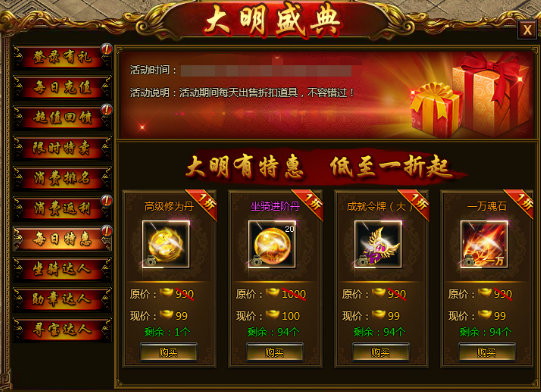 【活动说明】活动期间每天出售限量超低折扣道具!