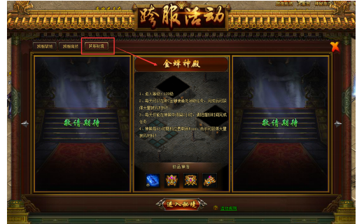 1、跨服秘境分三个神殿,目前开启的是:金蝉神殿