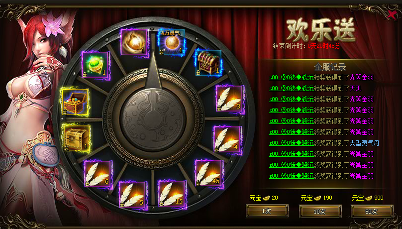 活动期间,玩家 累计充值满2000元宝 (可重复领取,最多可领取25次) |