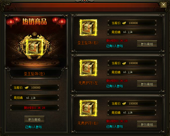 1. 活动期间,竞拍系统中将会出现稀有物品进行拍卖