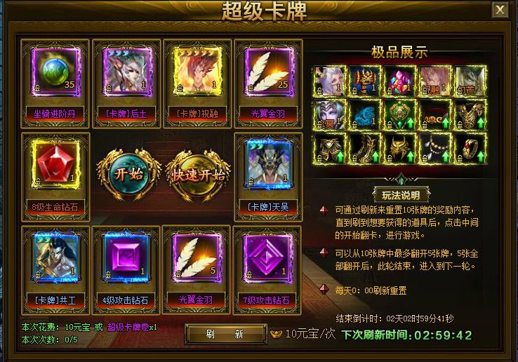 活动期间将开启幸运卡牌,华丽的极品道具,尽在幸运五连抽!