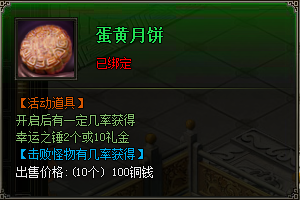 活动期间,各个地图打怪可掉落三种品质的月饼: