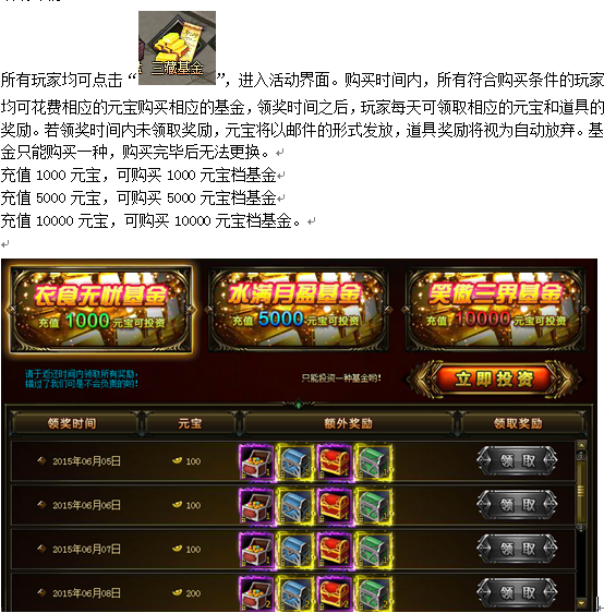 3. 购买基金消耗元宝不计算在元宝消耗内。